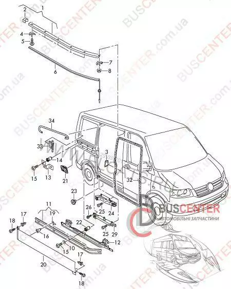 Накладка направляющей левой сдвижной двери Volkswagen Transporter 7H3843795D