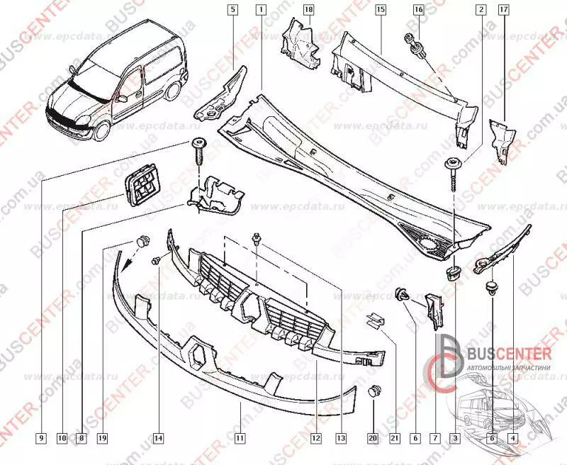 Накладка под лобовое стекло (накладка кузова наружная правая) Renault Kangoo 8200031673