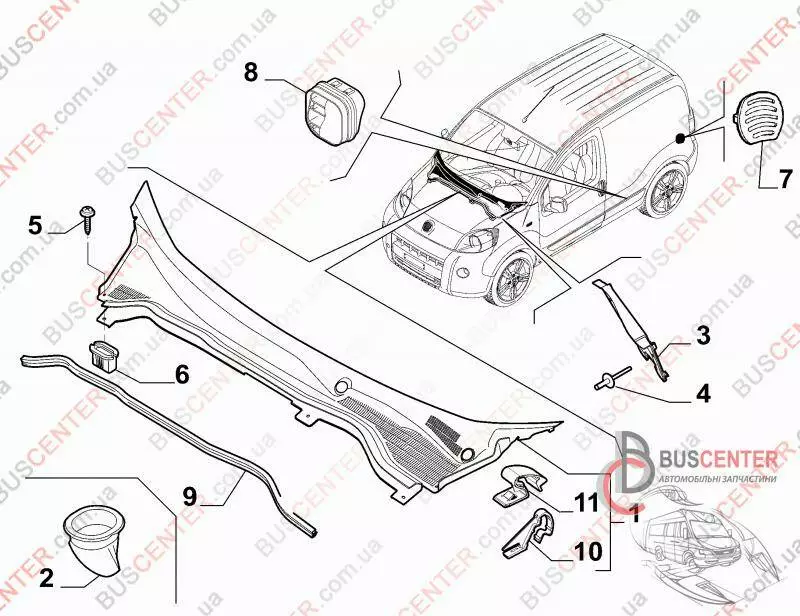Накладка под лобовое стекло (планка) Fiat Fiorino 735492887 735499089
