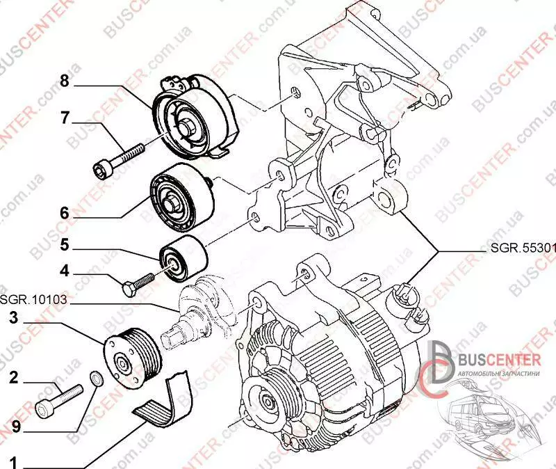 Натяжной ролик генератора Fiat Scudo 9405751679 GA359.82