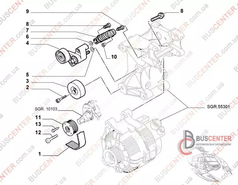 Натяжной ролик генератора (натяжитель) Fiat Scudo 9623001280 XM325