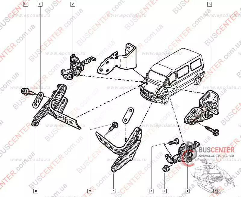 Навес двери передней левой / правой верхний / нижний