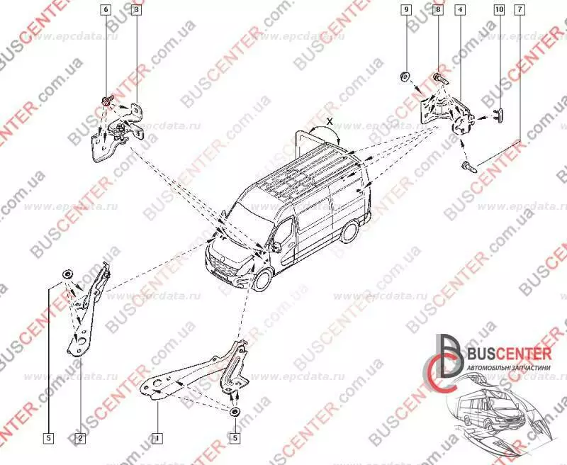 Навес двери задней распашной левой / правой верхний / нижний (петля 270°) Renault Master 844009783R