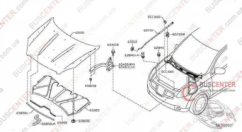 Навес капота правый (петля) Nissan Qashqai 65400JD000 65400-JD000