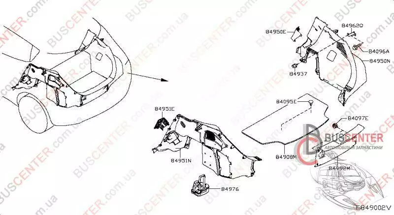 Обшивка багажника правая (черная) (карта задней правой арки) Nissan Leaf 849503NL1A 84950-3NL1A