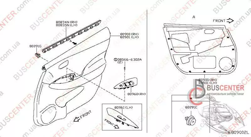 Обшивка двери передней левой (черная кожаная) (карта, панель) Nissan Leaf 809013NL0A 80923-3NL0A