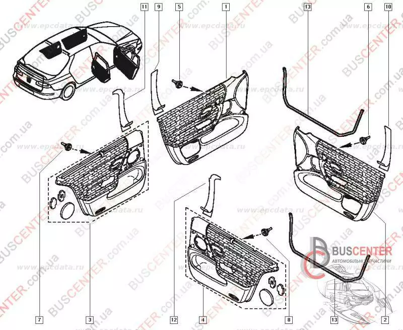 Двери, Багажник — Карта двери