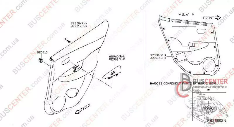 Обшивка двери задней правой (черная кожаная) (карта, панель) Nissan Leaf 829003NL0A 82922-3NL0A