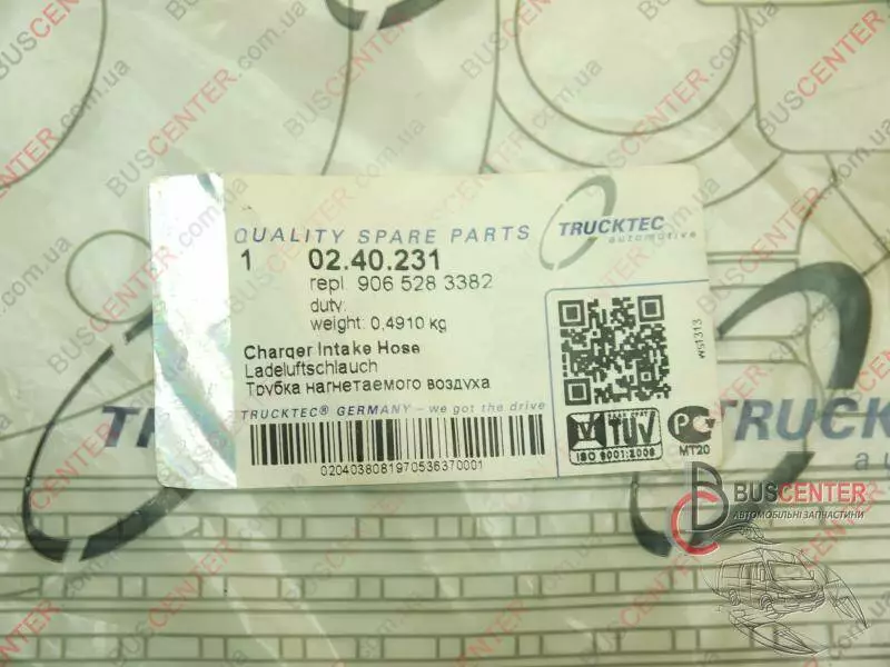 Патрубок интеркулера правый (OM646) Mercedes Sprinter 906 528 33 82 02.40.231
