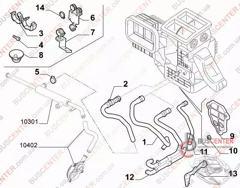 Патрубок радиатора печки