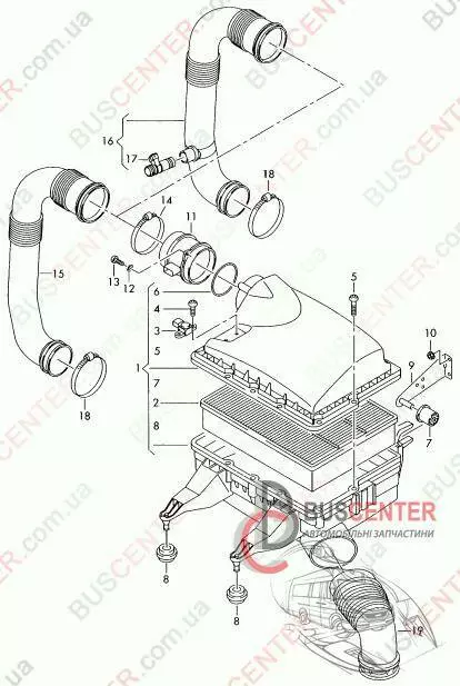 Патрубок воздушного фильтра (расходомер воздуха - турбина) Volkswagen Crafter 2E0129615B 2E0129615C