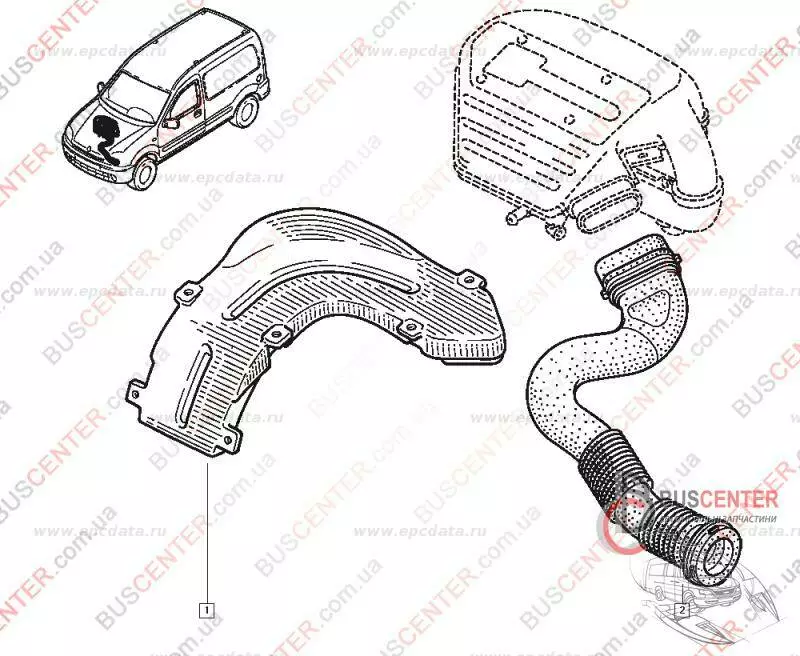 Патрубок воздушного фильтра (шланг системы охлаждения, воздухозаборник) Renault Kangoo 7700100708 91094J