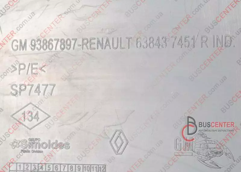 Подкрылок передний левый (часть задняя) Renault Trafic 638437451R 93867897