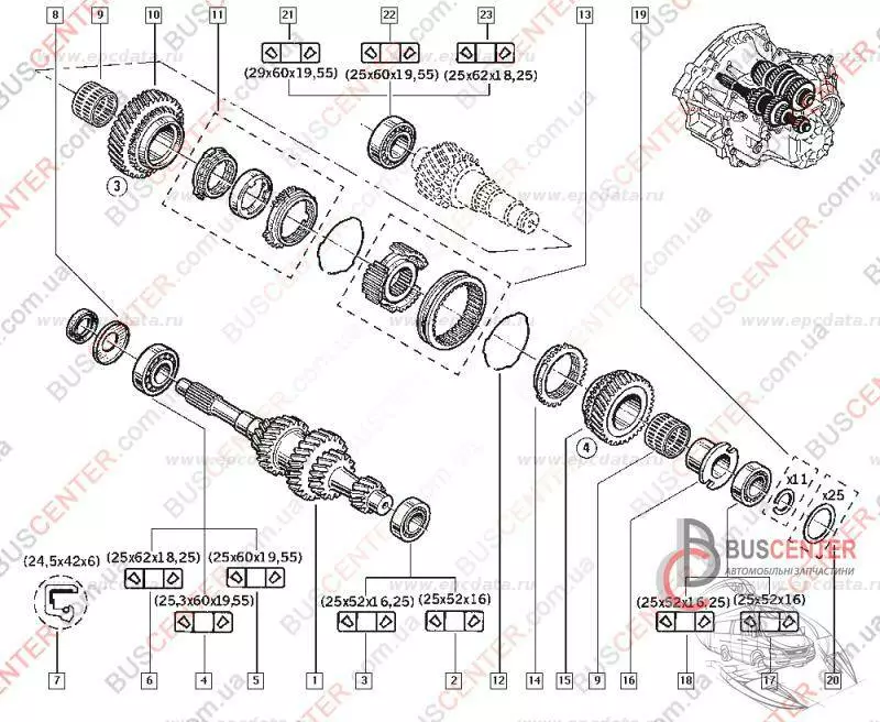 Подшипник КПП 25x52x16 Renault Master 7703090543 EC.12557.S02.H206