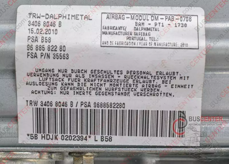 Подушка безопасности пассажирская (AirBag) Citroen C4 Picasso 9688582280