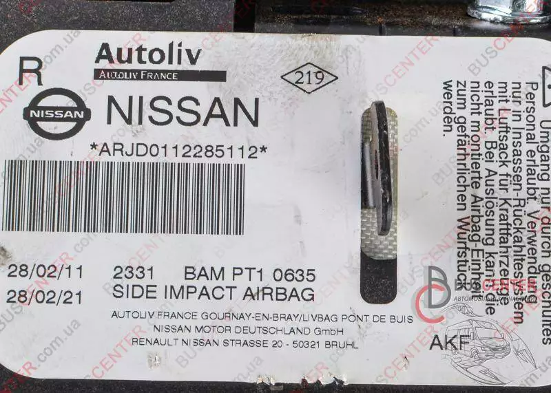 Подушка безопасности сидения (правая) Nissan Qashqai 985H0JD00A