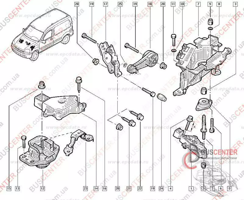Устанавливается на автомобили: Renault Kangoo 1.6 16v (1598 куб.см.), Renault Kangoo 1.9 dci (1870 куб.см.), Nissan Kubistar 1.6 16v (1598 куб.см.).