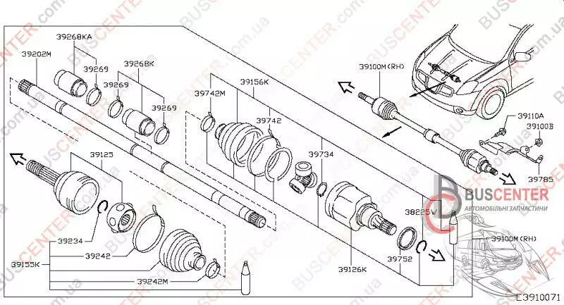 Полуось правая (приводной вал) Nissan Qashqai 39100JD02B 39100-JD02B