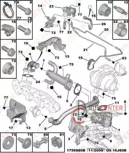 Прокладка клапана EGR (охладителя клапана EGR, манжет) Fiat Scudo 9644536080 1618 32