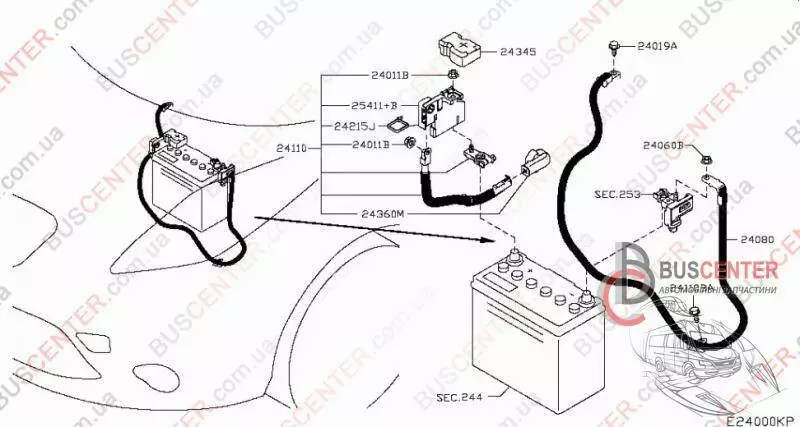 Провод минусовой клеммы АКБ (массы, земли, минуса аккумулятора) Nissan Leaf 240803NA0A 24080-3NA0A