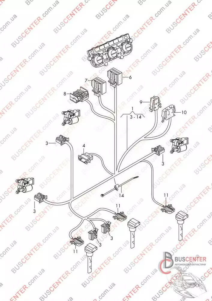 Проводка блока управления кондиционером Volkswagen Transporter 7E1 971 565 E 7E1971565E