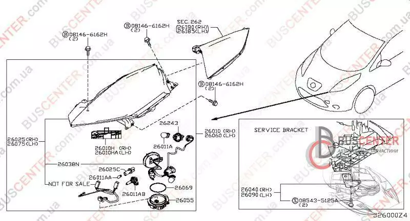 Проводка передней фары LED Nissan Leaf 260383NA0B 26038-3NA0B