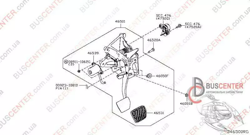 Пружина педали тормоза (обратная, возврата педали) Nissan Leaf 465393NA0A 46539-3NA0A