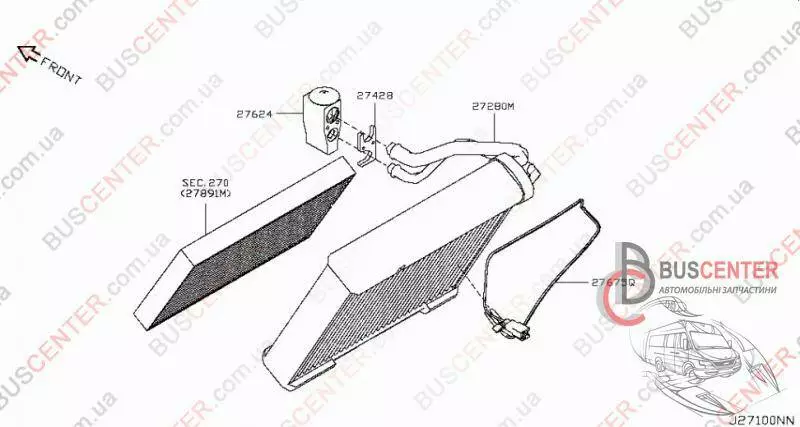Радиатор кондиционера малый (испаритель охлаждения воздуха салона) Nissan Leaf 272801FC3A 27280-1FC3A