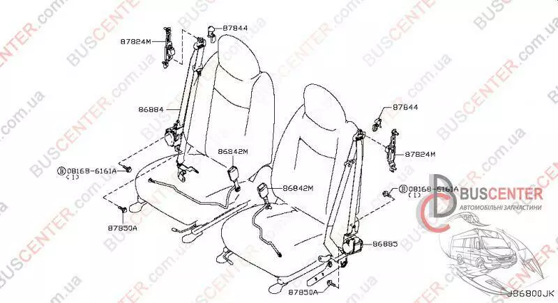 Ремень безопасности передний левый с пиропатроном (серый) Nissan Leaf 868853NA3A 619016600F
