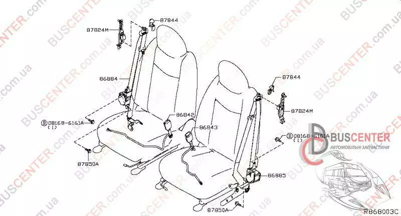 Ремень безопасности передний правый электрический (черный) Nissan Leaf 868843NF8B 86884-3NF8B
