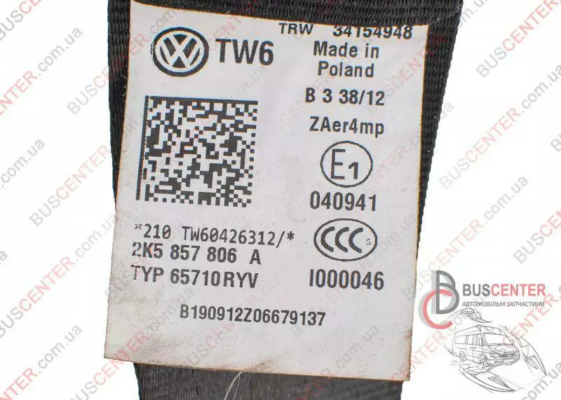 Ремень безопасности передний правый с пиропатроном (с 2011) Volkswagen Caddy 2K5857806A
