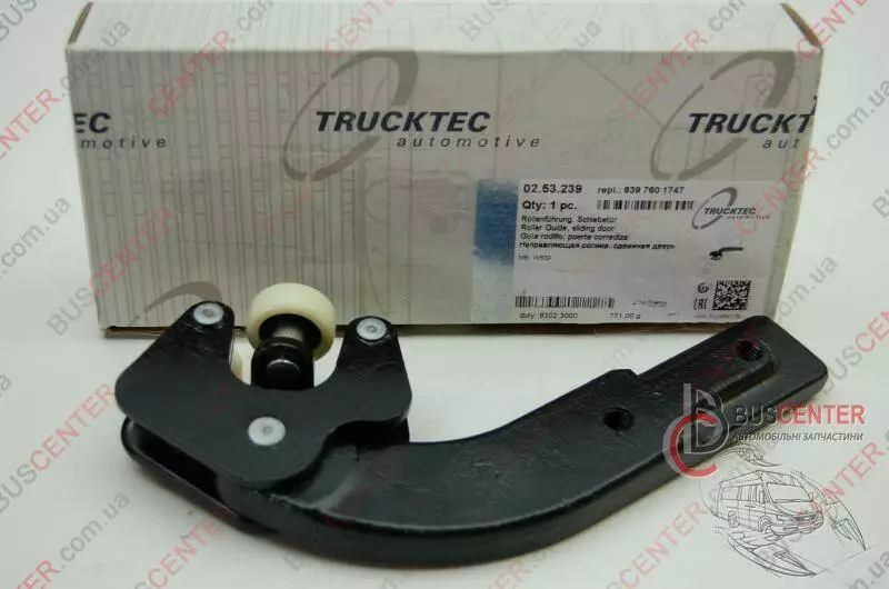Ролик боковой правой сдвижной двери нижний с рычагом Mercedes Vito A6397601747 02.53.239