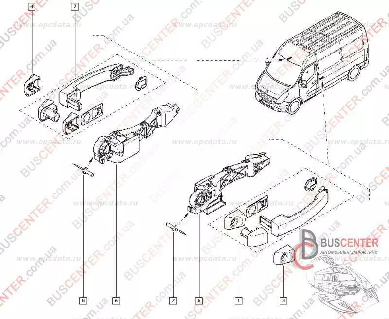 Ручка двери передней левой наружная (механизм) Renault Master 8261000Q0A 82610-00Q0A