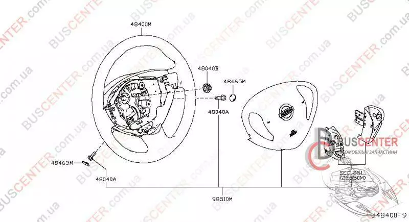 Руль под AirBag (серый) (голый) Nissan Leaf 484303NA0A 48430-3NA0A
