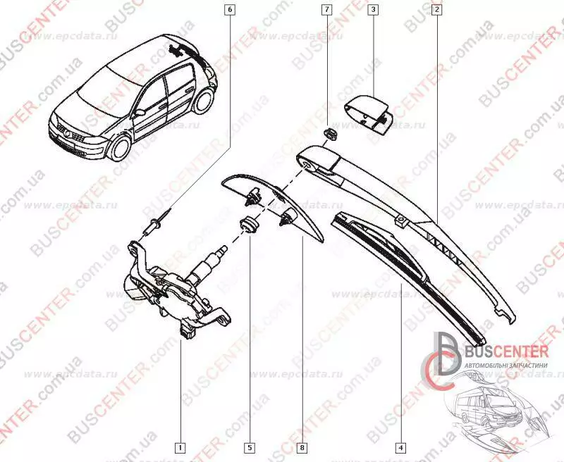 Щеткодержатель стеклоочистителя задних дверей