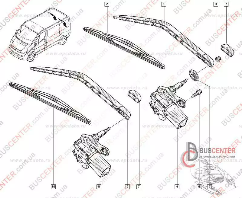 Щеткодержатель стеклоочистителя задних дверей