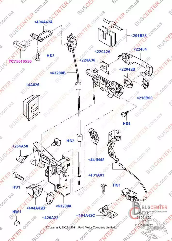 Скоба замка двери задней распашной левой верхняя (штифт, зацеп, фиксатор) Ford Connect 2T14V44163 2T14-V44163-AC