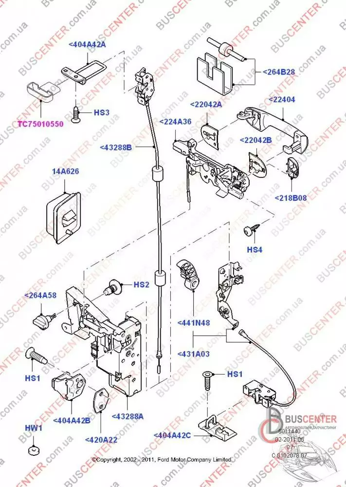 Скоба замка задней левой двери нижняя Ford Connect YC15V441A07AF