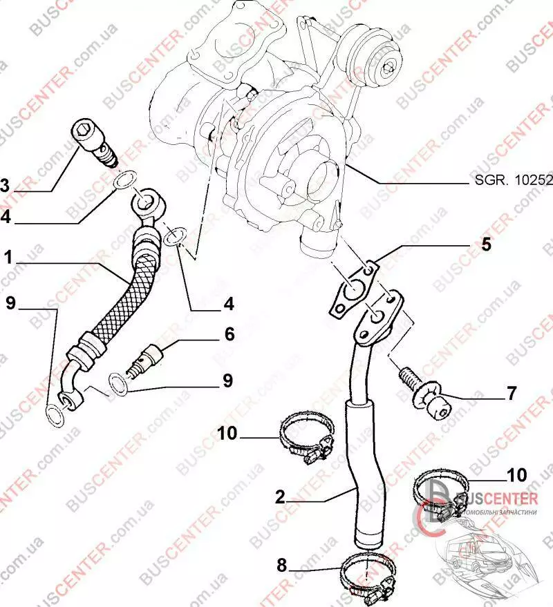 Сливная трубка турбины (верхняя часть) Fiat Scudo 9633454580