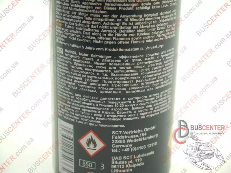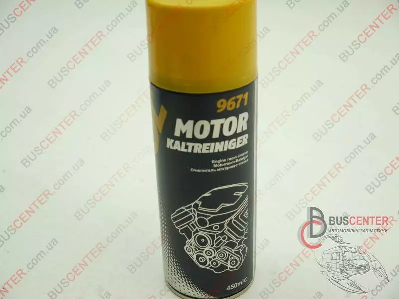 MANNOL Motor Kaltreiniger – эффективное средство для очистки моторного отсека и двигателя от грязи, масла и пригоревших технических жидкостей. Имеет повышенные растворяющие и моющие способности. Применимо также для чистки шасси, агрегатов, масляных фильтров, насосов, инструментов, мотоциклов, цепей, судовых моторов, тракторов, газонокосилок и т.д. Высоковязкая консистенция позволяет удерживать состав на вертикальных поверхностях, обеспечивая тем самым лучший чистящий эффект. Предотвращает разъедание резиновых и пластиковых деталей двигателя агрессивными загрязнениями, а также предупреждает окисление электрических соединений. Этот продукт не наносит вреда лаковым, хромовым, железным или алюминиевым покрытиям.