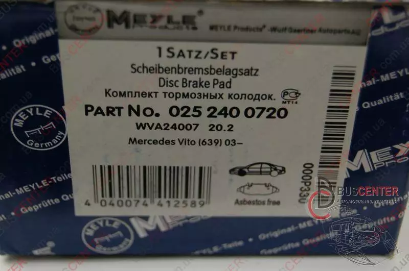 Тормозные колодки передние комплект Mercedes Vito A0004216110 025 240 0720