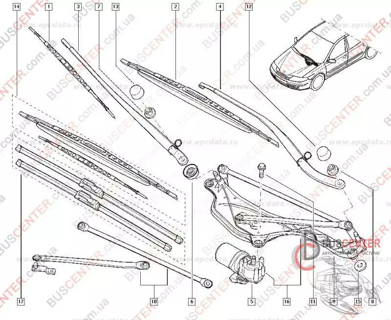 Система очистки окон и фар — Трапеция дворников
