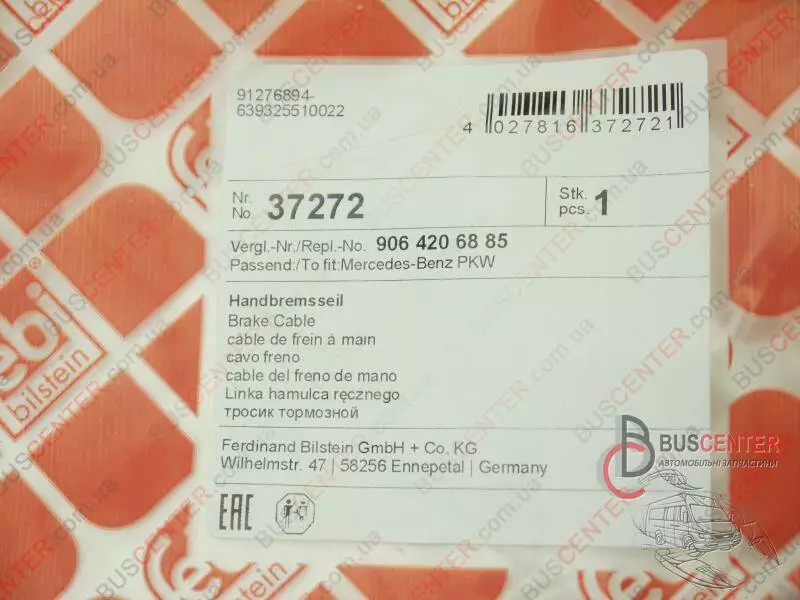 Трос ручного тормоза (1666mm (MB 208-319) Mercedes Sprinter 906 420 68 85 37272