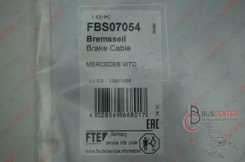 Трос ручного тормоза левый (1285/1035mm) Mercedes Vito 639 427 04 38 FBS07054