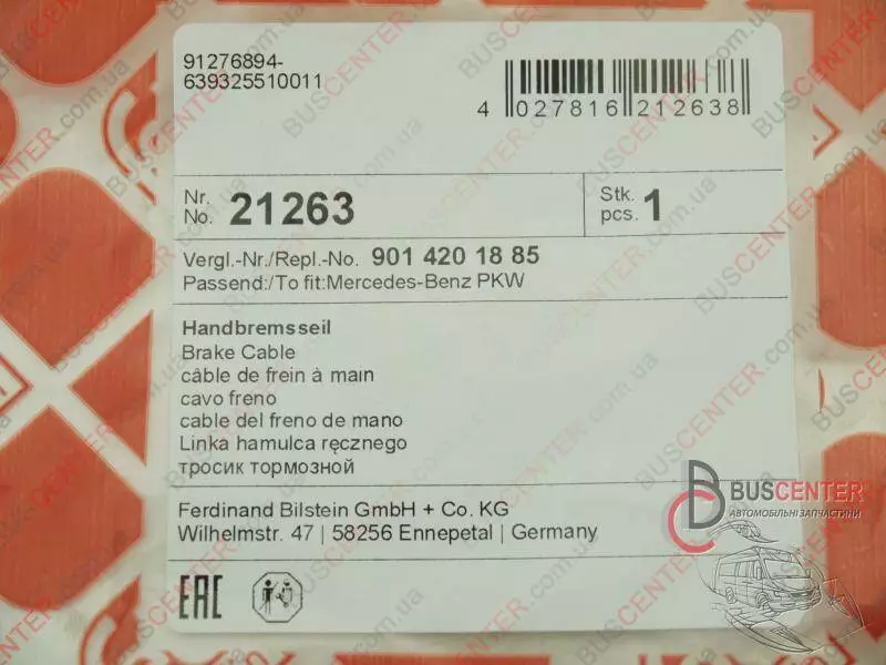 Трос ручного тормоза Mercedes Sprinter A9014201885 21263