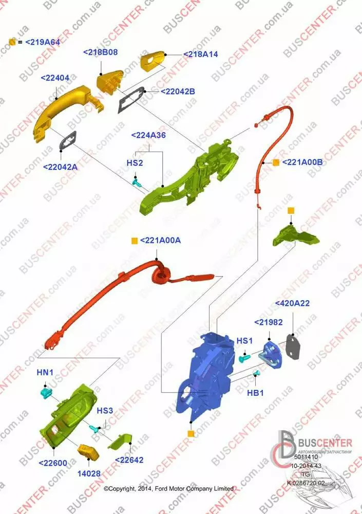 Трос замка двери передней правой/левой (длинный) Ford Transit BK31V221A00AC