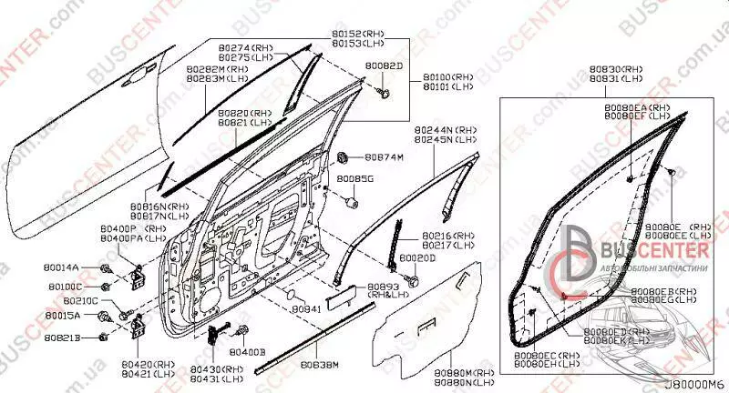 Уплотнитель двери передней правой Nissan Leaf 808303NA0A 80830-3NA0A