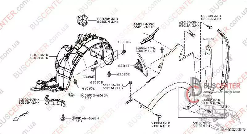 Уплотнитель переднего крыла левого / правого (накладка подкрылка) Nissan Leaf 638A23NL0A 638A2-3NL0A