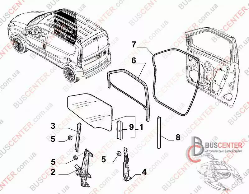 Уплотнитель стекла передней двери левой Fiat Fiorino 1354723080
