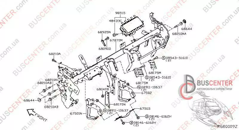 Усилитель торпеды (труба под панелью, подторпедная, крепление панели) Nissan Leaf 678703NF0A 67870-3NF0A